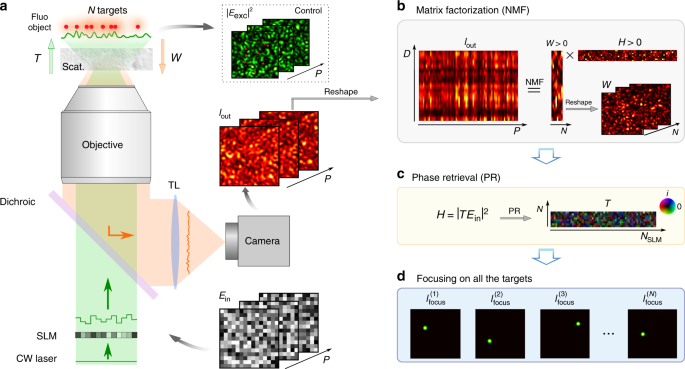 Non Invasive Focusing And Imaging In Scattering Media With A Fluorescence Based Transmission Matrix Nature Communications